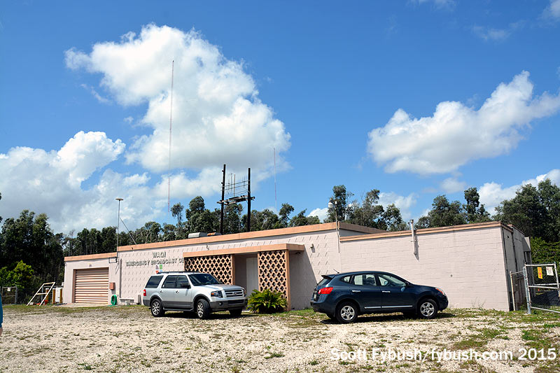 From here, our actual chronological path back in March 2015 took us westward across Alligator Alley at night to Fort Myers, then on a big South Florida loop that didn’t return us to Miami for a week. But we’ll keep all our Miami pictures together here on Site of the Week – so we jump ahead to our last couple of days in the region and to northern Miami-Dade County. Off the Florida’s Turnpike Extension on NW 138th Street in Miami Gardens, we see the little four-tower array of WNMA (1210 Miami Springs) and its X-band sister, WJCC (1710 Miami Springs). Would you believe WNMA, the ESPN Deportes outlet for the market, puts out 47 kW by day from here? (It started out way back when with just 250 watts on 1220 as WMET and then WCMQ, one of several Spanish-language outlets that took on Cuban-sounding callsigns after the revolution.)
