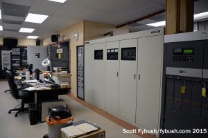 Inside, the original Storer-homebrew phasor still dominates one side of the long transmitter room, taking pride of place next to a Harris DX50 and the newer Nautel that’s now WAQI’s main.