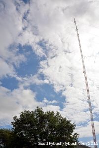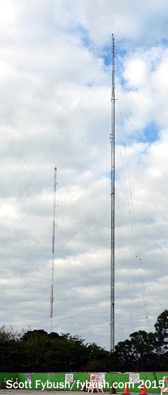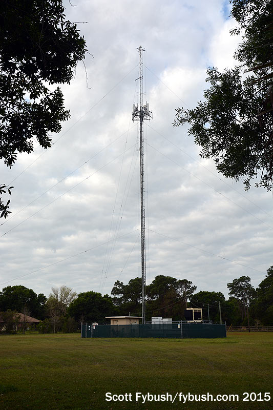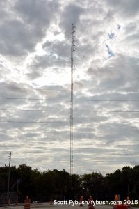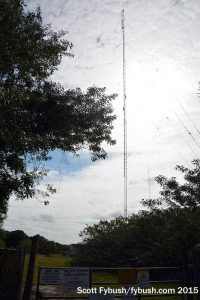 Clear Channel/iHeart still owns stations on the Treasure Coast, but only one is still in Vero Beach. That’s WZTA (1370), with a tower located straight down Old Dixie Highway from the Vero Beach Broadcasters studio. The WZTA calls are just warehoused up here so nobody can use them in their historic home of Miami; on-air, 1370 still goes by the same “WAXE” identity (except at the top of the hour) that it’s used since the 1950s. The WGYL tower is right next to WZTA at this transmitter site next to the city waste transfer station; look up above at the wide shot of this site and you’ll also see the tower for W300BQ (107.9), the WZTA/”WAXE” translator.