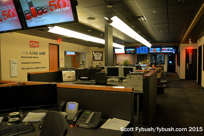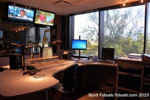 The KTAR News area includes a mirror-image pair of control and on-air studios with a nice view out to the newsroom; the newsroom, in turn, extends down into a sports bullpen that’s adjacent to a similar pair of studios for 98.7.