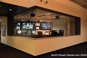 KAET’s master control is glassed in just off the lobby, which is down the hall from the big TV studios that are shared by Channel 8 and the Cronkite School. (The J-school produces its own nightly newscast, “Cronkite News,” that airs on KAET.)