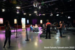 On the day we’re visiting, they’re getting ready for production on a local version of Antiques Roadshow; I think that was some lighting testing going on when we peeked into the big studio.