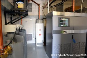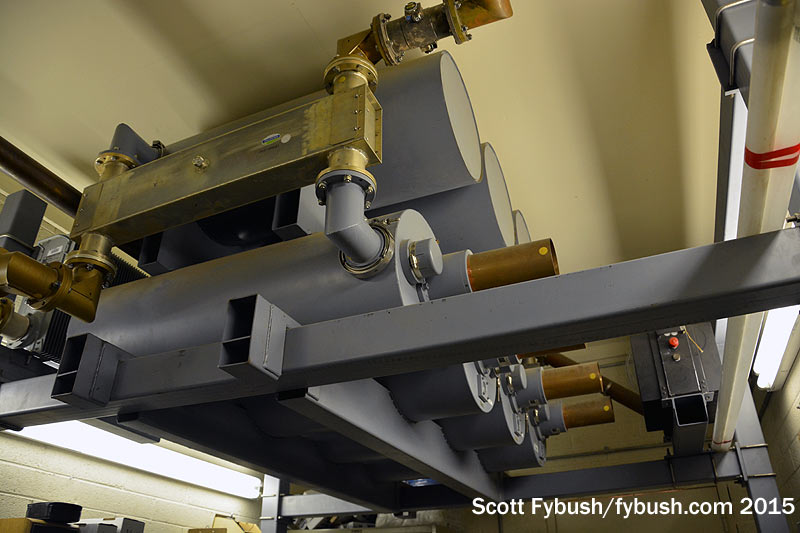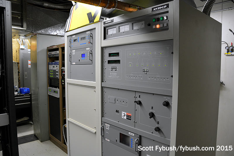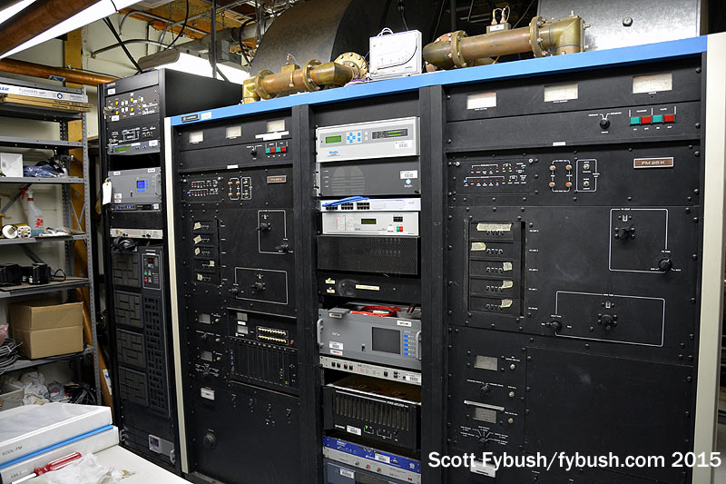 Up in the core of the mountain, we get to see something that won’t be there much longer: CBS Radio’s other two FMs, KOOL (94.5) and KMLE (107.9) are wedged tightly into a room that’s part of the building that houses Fox O&O KSAZ-TV (Channel 10). KOOL has been here for many decades, going back to when channel 10 was KOOL-TV; KMLE moved in later on, and now both stations are moving to a new space that was cleared out when KSAZ shut down its interim digital operation and went back to channel 10 for digital. (Which means we need to come back again sometime to see the post-move facility!)