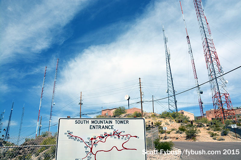 This is simultaneously one of the most remarkable and most accessible TV/FM mountaintop tower farms out there: it’s just a 20-minute or so drive up a nice paved road through a public park (largest county park in America!) to the gate that leads into this majestic farm that’s home to pretty much all of the market’s TV and FM action.