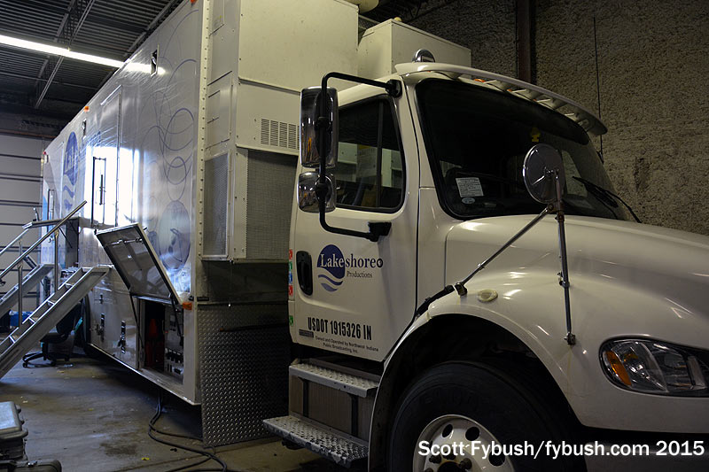 The ways in which WYIN/Lakeshore has been a different sort of PBS outlet have included a heavy diet of local sports and remote broadcasts. The big garage adjacent to the office part of the Lakeshore complex houses two remote trucks, one in fairly active use and the other not so much (though it has some unusual “channel 2” graphics on the side from when it was leased out for use as a prop in a TV show!)