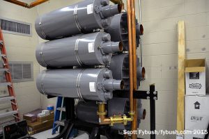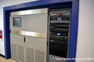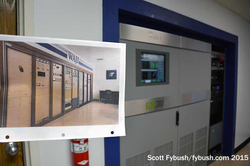 WAJI, too, had been a very recent recipient of a Nautel upgrade. At its transmitter site, at the tower of public TV station WFWA (Channel 39) on the corner of Hillegas and Butler Roads west of downtown, the engineers had thoughtfully kept some pictures of the previous version of this room, where there’d been a Continental and a Collins taking up rather more wall space than the new Nautel GV30. (Look closely to the right of the Nautel and you’ll see a bit of rack space that was about to be occupied by a new translator on 99.5, which launched later in 2015 as an alternative rock format fed by WAJI’s new HD2 channel.)