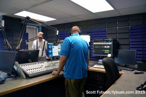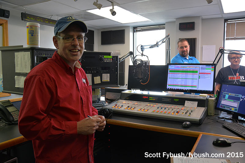 And speaking of WBYR and its Federated Media sisters, the DXers got a nice tour of their studio facility as well, across the river and a few miles south of Adams at the very southern edge of town. We gave you a lengthy look at this building five years ago, but there have been changes here, too. WOWO’s studio walls got made over when the news-talker’s morning show began a simulcast on WISE-TV (Channel 33), for instance. Down the hall, WBYR moved into a former production room from its old digs on the north side of Fort Wayne. And now another studio here has been repurposed for the new “Big 92.3,” which means we’ll have to stop by for still more new photos when we’re next in Fort Wayne, soon enough…