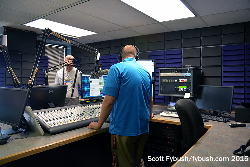 We took the DXers on a nice tour of the facility, and while we won’t repeat the entire tour here, we’re happy to share the niftiest image of that Saturday afternoon. That’s veteran Fort Wayne jock Rick Hughes doing a weekend oldies shift on WLYV (1450), the station Adams runs as a talker the rest of the week. It’s fun to see and hear it return to its top-40 roots for at least a few hours, and Rick was having a grand old time doing it.