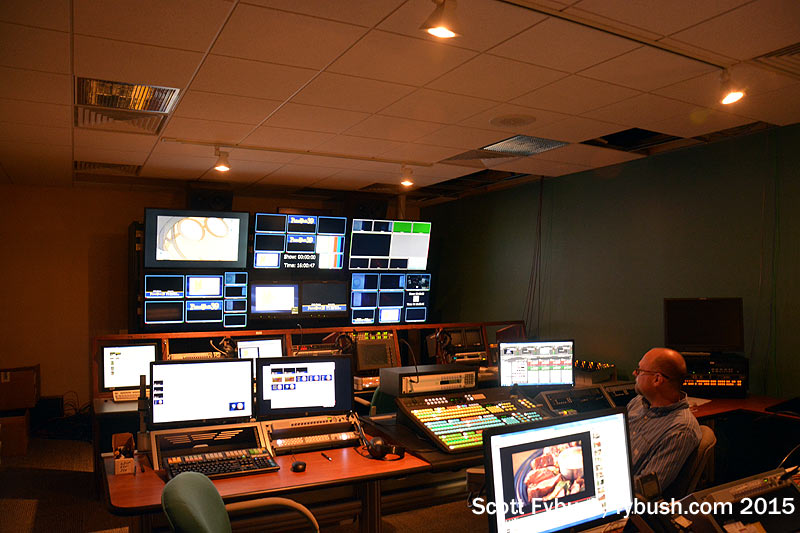 WFWA’s broadcast center was going through some upgrades when we visited: its master control can finally pass full HD, and the production control room behind it has also recently been upgraded for local HD and digital audio. The studio at the very rear of the building is still one of the biggest in town; that’s just half of it you see below.