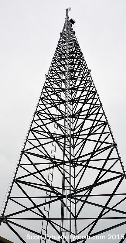 WMEE (97.3) is Fort Wayne’s oldest FM station, and its tower has been the northernmost big stick in the tower farm since the 1980s, when it broke away from former sister station WKJG-TV (Channel 33). Today, that 720-foot tower is home to three Federated Media stations: WMEE, country WQHK (105.1 Huntertown) and what was news-talk WOWO-FM (92.3) when we visited.