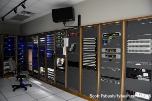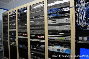 GPB’s radio facilities are on one side of the first floor of the building. There’s a spacious rack room from which GPB sends network programming out to its local studios and transmitters around the state, and a studio cluster down the other end of an L-shaped corridor.