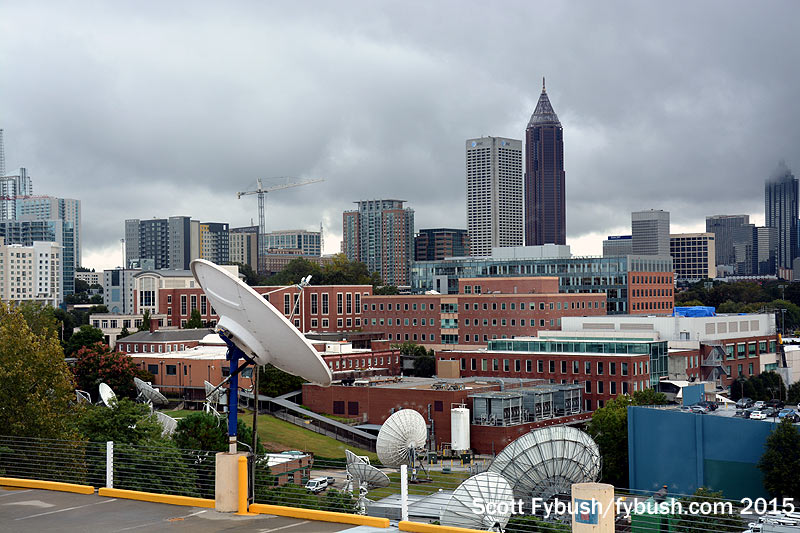 The dish farm on the roof of GPB’s parking garage gives a great overlook of the Turner Broadcasting campus on Techwood Drive just to the south, not to mention downtown Atlanta beyond.
