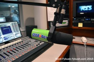 And check out the way Entercom handled the eternal challenge of putting station branding on a Shure SM-7 mic – instead of a big flag above or on the side of the shockmount, they took the mics to a shop that does vinyl wraps for station vehicles, where they carefully matched the dimensions of the mic’s body with a custom wrap with the station logo.