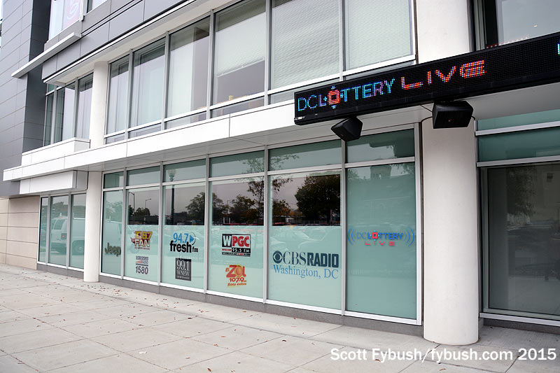 As one does these days, the facility also includes a performance studio and a live radio studio downstairs from the main air studios. The street-level “DC Lottery Live” can hold live broadcasts from any of the stations; some of them do live morning shows here and open the front doors to anyone who wants to come watch radio being made and eat some donuts.