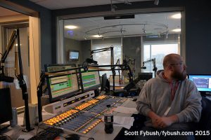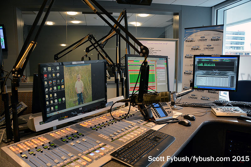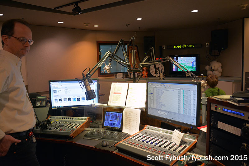 My young traveling companion got to tag along for one more DC studio visit, too – when last we checked in at WETA (90.9) over in Shirlington, Virginia, the public radio classical station was getting ready to replace its old Studer consoles with a new Axia system, complete with a main studio console carefully divided in half to fit the old Studer split-console layout. (WETA’s engineers even replicated the wooden end panels of the Axia after cutting it in half. Neat, huh?)
