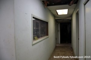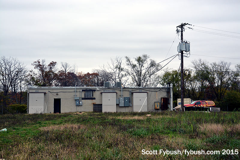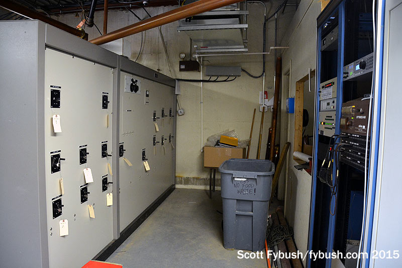 I think – but am far from certain – that the dusty former studio spaces at one end of this low-slung brick building date to that 1956 period when the FM (which was briefly “WRNC, Rock and Country”) was operating both studios and transmitters out here; in any event, most of the top-40 heyday of WPGC AM and FM came from studios at several other locations, though it was transmitted from this site.