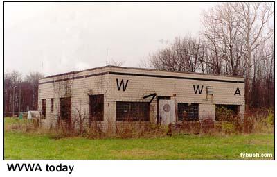 In recent years, like so many small AM stations around the country, WVWA has fallen on hard times, frequently spending several months at a time off the air. The Blaw-Knox tower now lists at a slight angle, and the transmitter is housed in the back of a station wagon behind what’s left of the studio building. A recent deal that would have made the station the “New York” flagship of “America’s first all-libertarian talk network, Air Whatever” fell through – but if there’s anything to be learned from WVWA’s history, it’s that you can’t count a 250-watt daytimer on a Canadian clear channel out completely.