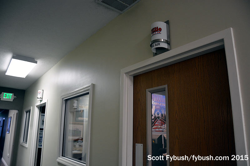 The LPFM transmitter is in a back room at a building Brian owns on North Detroit Street (IN 15) near Center Lake north of downtown; in front, Brian was building out offices and a full-fledged studio when we visited.
