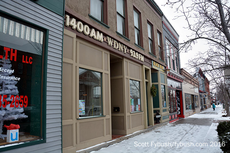 For the last few years, WDNY has belonged to Brian McGlynn’s Genesee Media, and its Main Street home provides studio space for the AM signal, the FM (now “My 93.9” WMRV, with a heritage Binghamton callsign) and McGlynn’s Rochester-area sports stations, WOKR (1590 Brockport)/WRSB (1310 Canandaigua).