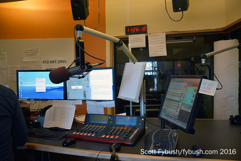 WYEP’s music studio is on one side, with a mirror-image studio on the other side that’s now home to WESA’s news-talk format. WESA’s local talk show, “Essential Pittsburgh,” comes from a small studio back here as well.