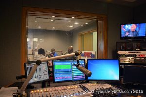 All of the sports signals share a studio across the hall from WRAL-FM, with live talk rotating among the various signals – 99.9 “The Fan,” “The Buzz” on WDNC and two FM translators, and now “The Ticket” on 99.9-HD3 and 1550. Additional production rooms fill out the rest of the studio cluster at the core of the building, which is shared with Capitol’s satellite operations.