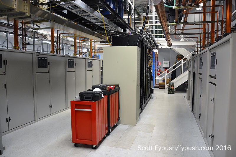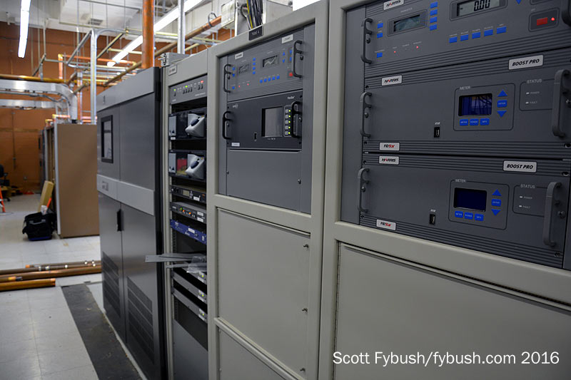 As the landlord here, WRAL got the room closest to the tower base, where it has two neat rows of transmitters, one for WRAL-TV and one for WRAZ, with racks in between and a tidy office space off to the side.