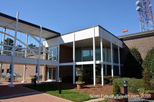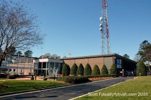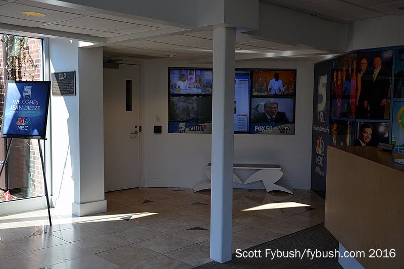 For WRAL, this was a move back in history – the station signed on in 1956 as an NBC affiliate, flipped to primary ABC in 1962 and then to CBS in 1985. But the WRAL-TV staff of 1956 would have had a hard time recognizing their facility on Western Boulevard 60 years later. The original WRAL building has been expanded many times, creating a two-building campus that now also houses sister Fox affiliate WRAZ (Channel 50) and the corporate headquarters for the Capitol Broadcasting Company, with a lovely garden area separating the headquarters from the TV station.