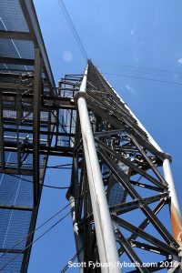 Halfway between the WTVD tower and old US 70 sits the newest of the tall towers at this site. This 1988-foot candelabra went up in 2000 to provide more capacity for digital TV transmission, and today it’s home to four stations: Capitol’s WRAL-TV (Channel 5/RF 48) and WRAZ (Channel 50/RF 49), Media General’s WNCN-TV (Channel 17/RF 17) and Sinclair’s CW affiliate WLFL (Channel 22/RF 27).