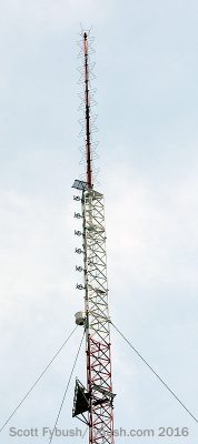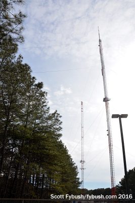 WHRO’s tower is one of the newer ones in the Driver tower farm, a 1259-foot candelabra that went up in 2006 toward the west end of the farm adjacent to an older WHRO tower. The candelabra also became the DTV home for four other full-power TVs in the market: WTKR (Channel 3/RF 40), TBN’s WTPC (Channel 21/RF 7), My Network affiliate WTVZ (Channel 33/RF 33) and ion’s WPXV (Channel 49/RF 46). The older WHRO tower is still there next to the candelabra, supporting antennas for WHRO-FM (90.3) and WHRV (89.5); there are also aux antennas for Entercom’s FMs in the market here.