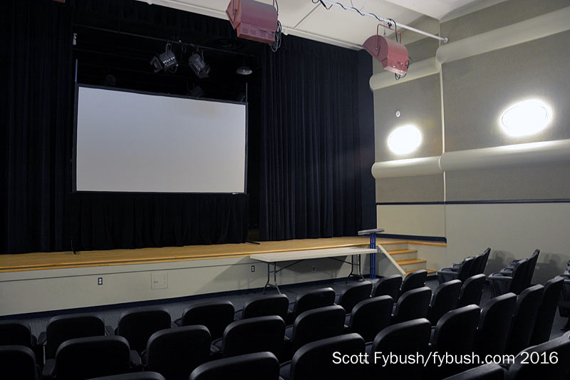 After a fairly recent renovation, that auditorium is still in use and still gleaming, from the stage right up to the old Kliegl Bros. scoop lights that still hang over the stage.
