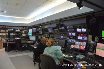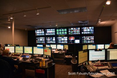 Control rooms are down the hall here, both the production control room and master control – WVEC, alone among the Big Four affiliates here in town, has a local master control that serves only its own channels. There’s an annex building, too, across the street, providing extra room for some of the marketing department and to house WVEC’s news vehicles.