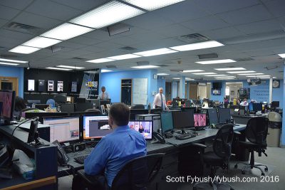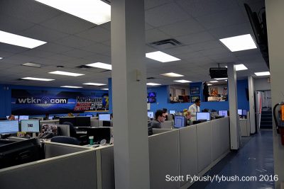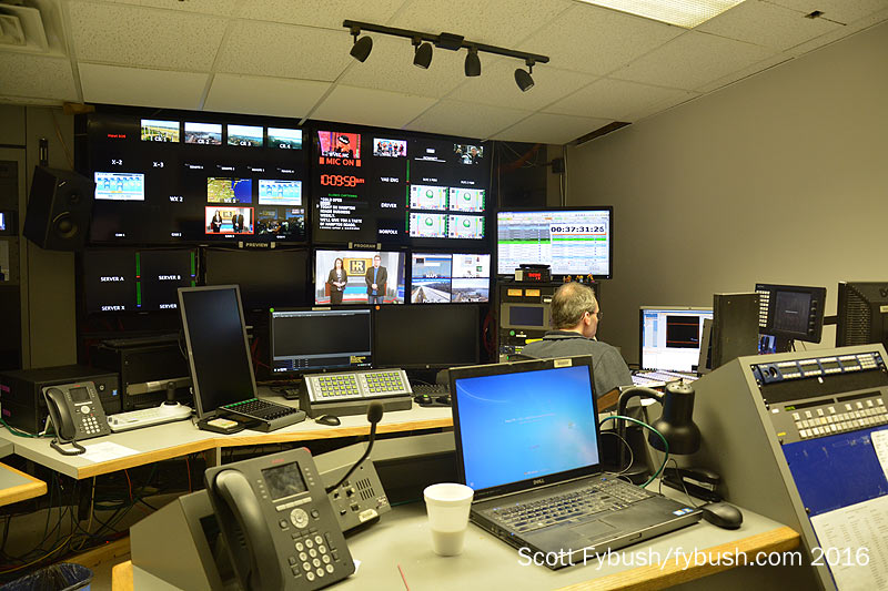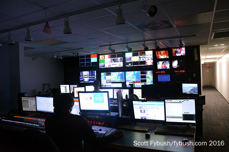 Upstairs, there’s a control room for TV down the hall from the newsroom, which sits in an annex to the original 1949 building. Up another floor, we’re at the space where the WTAR radio studios originally sat. It’s been decades since WTAR radio moved out, leaving the renamed WTKR-TV behind – and now the old radio studio space is a hubbed master control for many of Local TV LLC’s markets, including WTKR and WGNT locally.