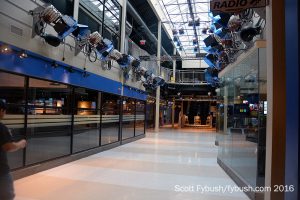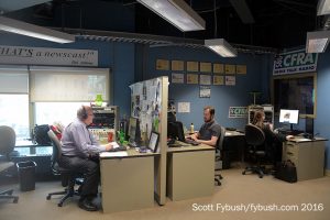 At the other end of the newsroom, another hallway passes the CFGO sports studio and the CFRA control room and studio.