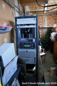 The other two FMs in the cluster are in the front of the building, just off the lobby: WTOJ (103.1 Carthage) is the oldest FM in the group here, playing AC as “Magic 103.1” from a big corner studio. The room next to that was just about to be torn out and rebuilt; it’s home to WBDR (106.7 Copenhagen), which plays top-40 as “the Border.” (See, I told you we’d see “the Border” more than once here!”)