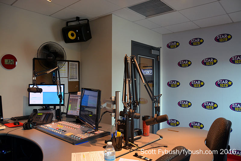 At the other corner of the “U,” toward the back of the building, top-40 KVGS (Star 107.9) has another spacious studio.