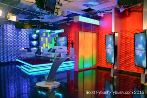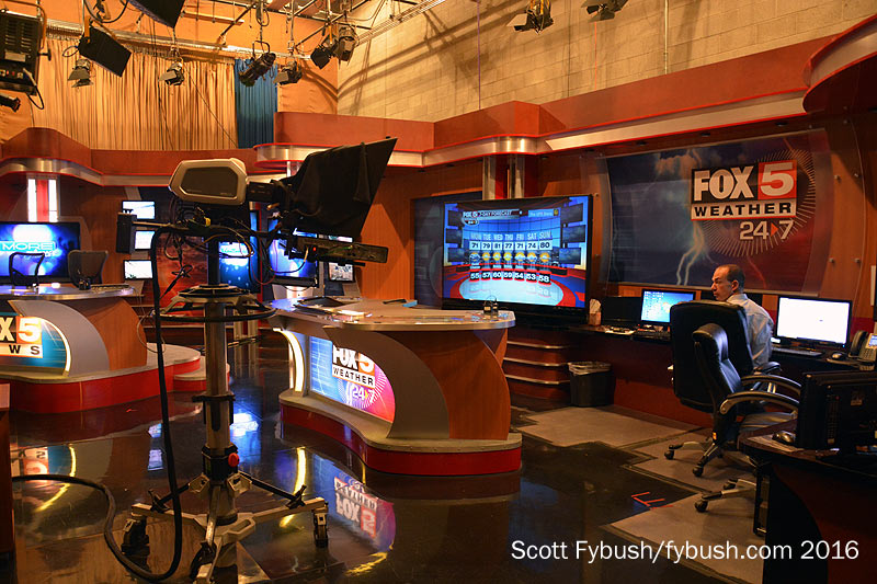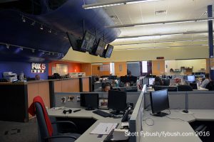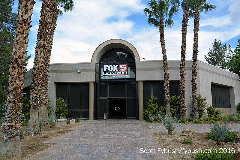 The newsroom sits toward the back of the building, next to a spacious garage/scene shop. KVVU has massively increased its news presence in recent years, including a morning show that runs until 9 and an extensive evening schedule that makes it more than competitive with the more-established “big 3” in town.