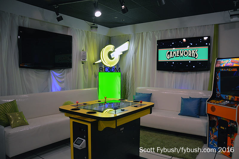 Head in one direction down the hallway from the atrium and you’ll come to the studios where KVVU does its midmorning “More” lifestyle show. In addition to the Vegas-glitzy main studio, there’s a green room – er, “G-Room” – that’s filled with games to entertain guests, as well as a really nifty upstairs music loft for visiting performers. (And there are lots of those in Vegas, of course.)