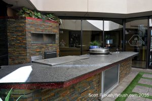 Channel 5 signed on in 1967 from a different Henderson location (a converted gas station) as independent KHBV; at one time, it was owned by Johnny Carson. It’s been in its present spot off Sunset Road since the early 1990s, a low-slung building that opens from a lobby into an interior courtyard that doubles as a cooking studio, with a very nice built-in kitchen island.
