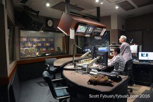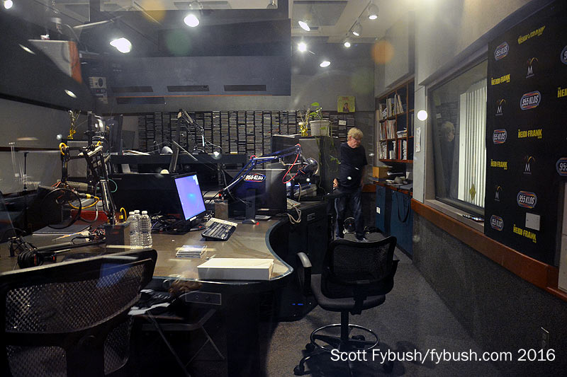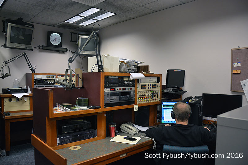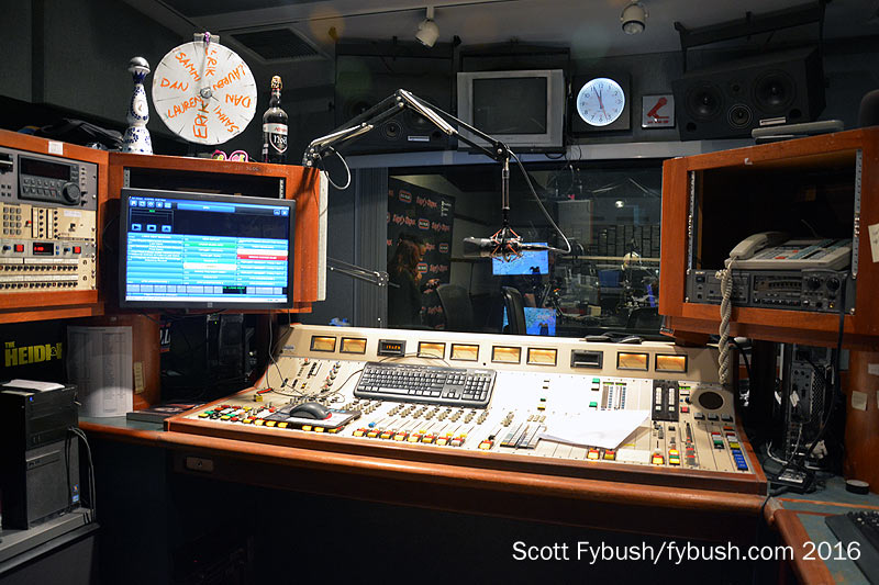 Yes, that’s a wall of carts at the back of the main air studio; no, they don’t get used on the air these days.