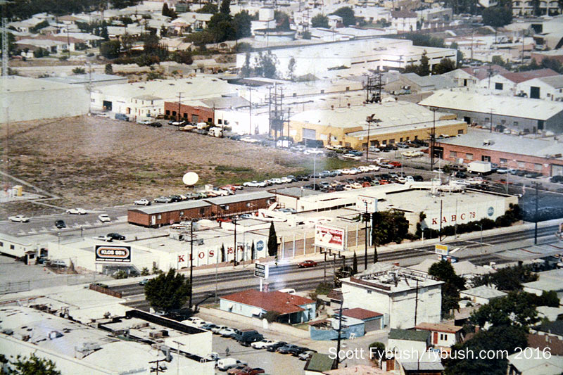 Consider: when this dramatic curved building went up to replace an earlier studio compound that sat right on the La Cienega frontage, there were plenty of “classic” broadcast studios still in use around town. RKO’s KHJ/KRTH was just a few blocks north on Venice Blvd. (and today, as CBS Radio’s KROQ/KCBS-FM complex, may be the last of its kind.) CBS, for its part, still had KNX and then-KKHR ensconced in the Art Deco Columbia Square. KFI was just moving from its Deco home on Vermont Ave. to Koreatown.