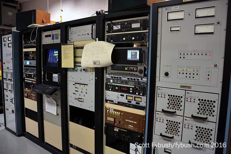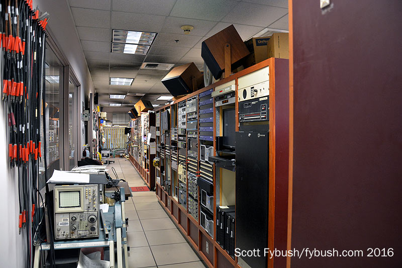 More “they don’t build ’em like that anymore”: check out those oh-so-80s racks in the rack room – and behind it, not visible here, the skeins of point-to-point analog wiring that connected it all to the studios throughout the complex.