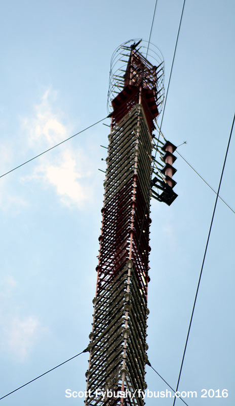 Because of spacing issues to what were then WGR-TV in Buffalo and WSYR-TV in Syracuse, WKTV couldn’t use channel 2 from Smith Hill, and so it picked this hilltop site to serve a broad swath of central New York. Even after the move to DTV (and RF channel 29) eliminated the spacing issues, WKTV stayed put out here, using a side-mounted antenna below the old helical channel 2 antenna at the top of the tower.