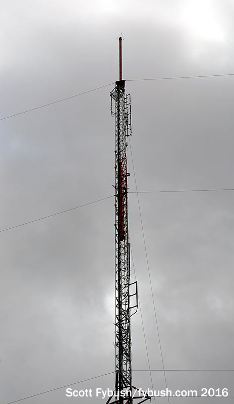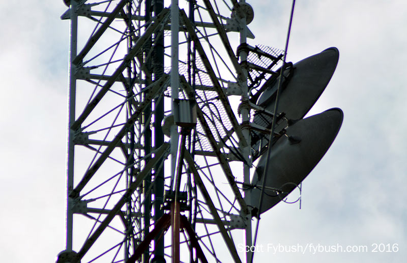 There’s a small FM on this tower these days, too: religious WVVC (88.1 Dolgeville) has a one-bay antenna tucked away below WKTV’s STL dishes midway up the tower.