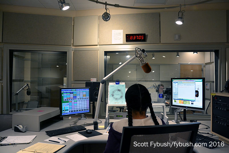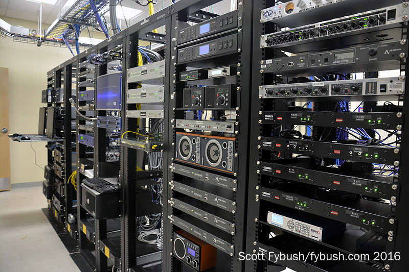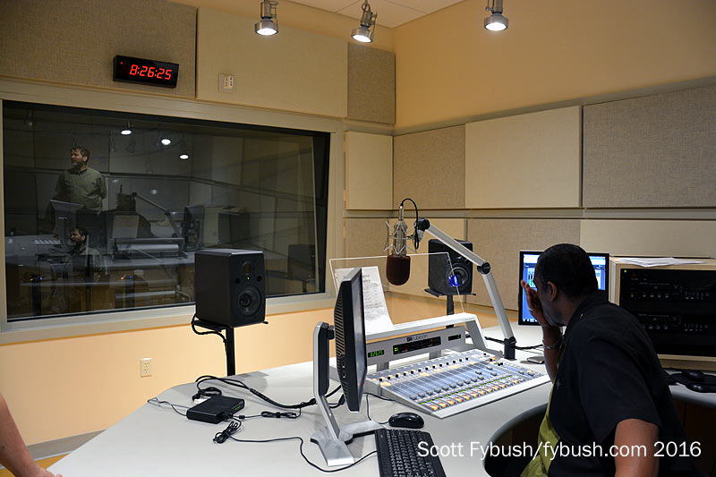 Deeper into the building, isolated from streetside noise, we find the rack room and the core of broadcast studios, including the main air studio from which the local “Morning Edition” inserts are airing as we take our tour.