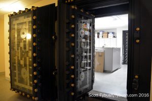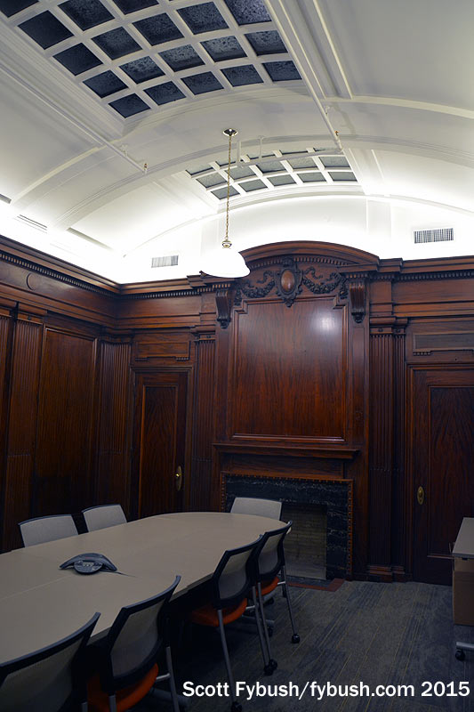 The building is actually an amalgamation of several structures, including one right on the corner that spent much of its life as a bank. That explains the beautiful paneling and vaulted ceiling in the boardroom – and the vault just down the hall that now houses valuables such as NEPR bumper stickers and other pledge-drive premiums!