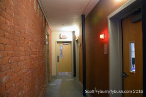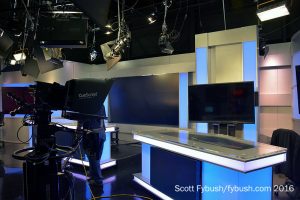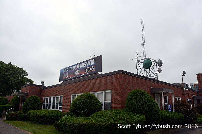 In recent years, WGGB changed hands repeatedly, spending time under the ownership of local businessman Bruce Gormally before landing with its present owner, Meredith. Meredith already owned the market’s relatively new CBS affiliate, WSHM-LD (“CBS3”), and it didn’t take long for the company to merge its CBS newsroom (which had been downtown in the Monarch Place tower) with its ABC/Fox WGGB operation up here, sharing an expanded studio on the north side of the building under the “Western Mass News” banner. There’s a new set from which newscasts originate on all three signals (ABC on 40.1, “Fox 6” on 40.2 and “CBS3” on 3.5, which is a low-power RF21 signal), occupying the original 1950s-era TV studio space at the core of the building.