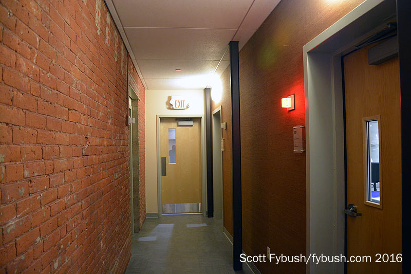 There are more production studios just around the corner from the air studio, and we find one of WFCR’s music shows being recorded in one of the studio/control room pairs here. There’s office space up front in one of the streetside windows, next to the stairwell that leads down to the basement where there’s more office space as part of this 17,000-square foot facility.