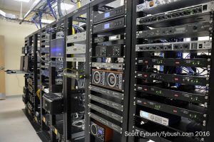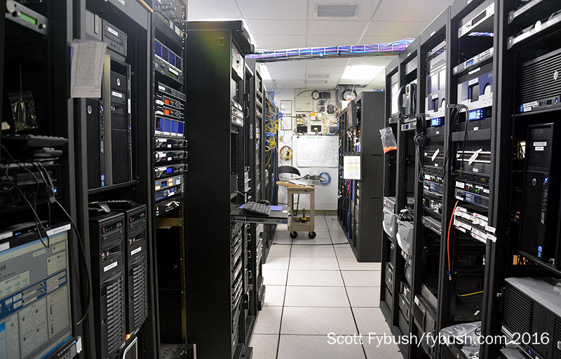 A door separates the news studio from a second studio area that can be used for interviews, and from here we move to the south side of the building, which is where the old radio studios used to be and where the current digital tech core is located. (Everything except master control; Meredith hubs its master control operations for all its stations.)