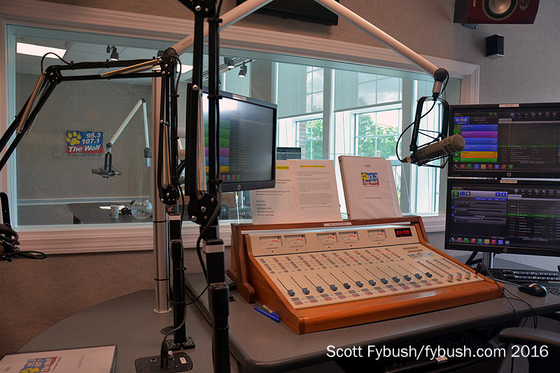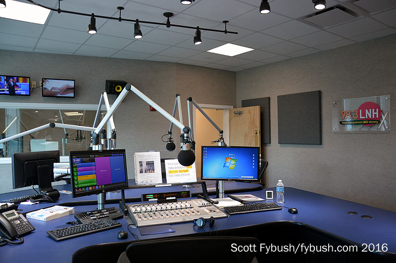 WNNH (99.1 Henniker) is the news-talk piece of the radio cluster, using the “NH1 News” branding and lots of news product from the newsroom downstairs, and country for this cluster is “Wolf” WNHW (93.3 Belmont), which shares its format and branding with sister “Wolf” stations up in the Upper Valley, WXLF (95.3)/WZLF (107.1), which get much of their programming from here.
