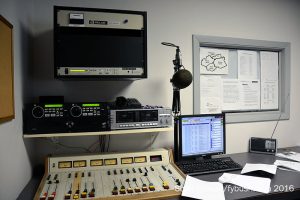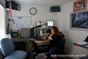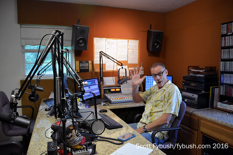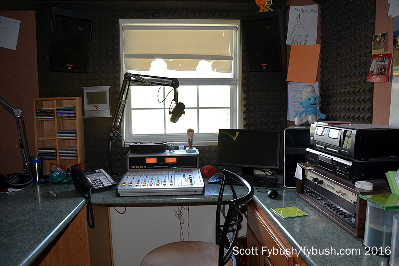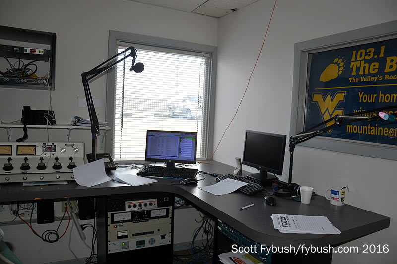In last week’s installment (click here if you missed it!), owner Tom Taggart was showing us his stations over in St. Marys, 20 miles or so east of Parkersburg. But V96.9 is his showplace, in part because of how cleverly Tom converted a house into a full-fledged radio station. From the office in the front living room to the full kitchen in back to the studios in bedrooms down the hall, he’s built out a nifty local station here.
